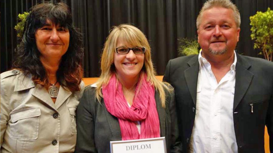 von 18: Groß ist die Freude, ehemalige BFC-Absolventen und jetzt deren Kinder in Northeim zur Verabschiedung zu treffen. Rudolf Kehm, Mercedes-Partner in Bad Neustadt gehörte zur BFC-Riege Calw, hier mit Tochter Nina und Ehefrau Petra.