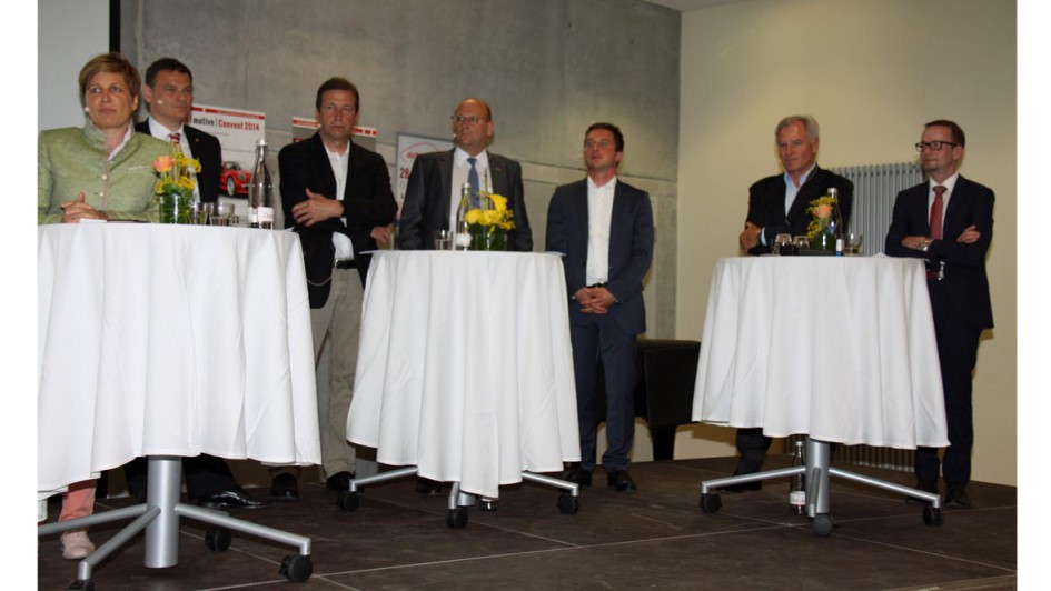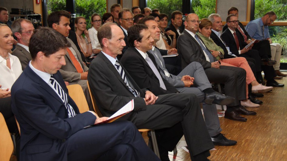 von 5: Inbetriebnahme der Elektrotankstelle am Institut für Automobilwirtschaft (IFA): Prof. Willi Diez, Prof. Andreas Frey, OB Wolfgang Amann, Herbert Forstreuter (Heldele), Klaus Meissner (Kreissparkasse), Christine Kumpf (Wirtschaftsförderung Göppingen) und Christian Gropp (AlbWerk)