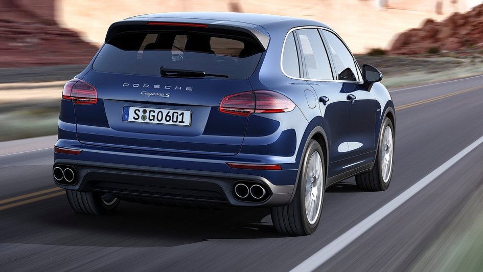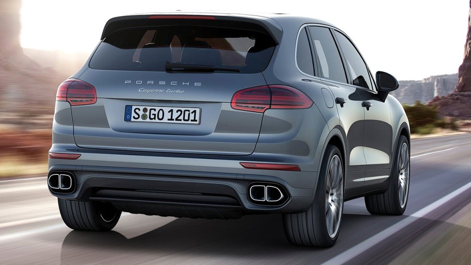 von 12: Am Heck gliederten die Designer die horizontalen Linien neu, die Bremsleuchten sind anders geformt und die Auspuffendrohre in das Heckunterteil integriert, so dass der Cayenne noch breiter wirkt.