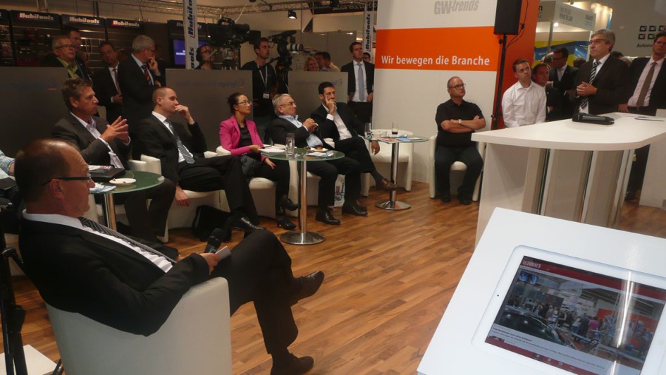 von 8: Moderator und Chefredakteur Ralph M. Meunzel (links im Bild) erkannte ein wesentliches Problemfeld für ein nachhaltiges Unfallreparaturgeschäft: Bei vielen Kunden herrscht ein Informationsdefizit vor, was im Schadenfall tun sei und welche Unterstützung die Stammwerkstatt bietet.