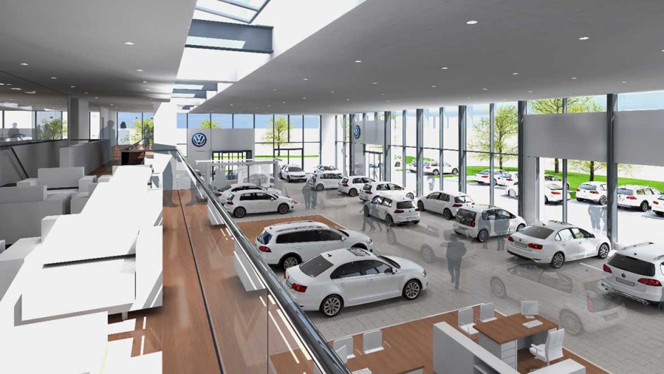 von 3: Das Erdgeschoss des Neubaus soll die Neuwagenausstellung sowie den Werkstattbereich mit Direktannahmeplätzen und einer Waschanlage beherbergen.
