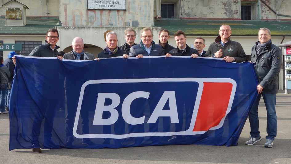 von 15: Besuch beim Mercedes-Händler RAB Motors mit General Manager Mike Westbrook (5.v.l.). "Der Kunde soll sich so wohlfühlen wie im Ritz Carlton", sagt Westbrook. Die Serviceberater tragen Hemd mit Krawatte.