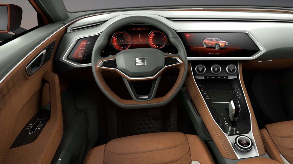 von 10: Die Innenarchitektur der Studie wird es kaum in die Massenproduktion schaffen, aber zumindest sind frei konfigurierbare Instrumente ja bereits Standard in diversen Baureihen des Volkswagen-Konzerns, so dass auch bei der Serienversion des Seat-SUV mit ihnen zu rechnen ist.
