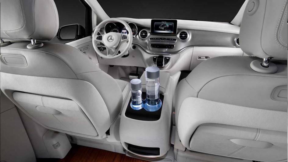 von 4: Ausklappbare Tische, iPad-Halterung sorgen für noch mehr Komfort, genauso wie die große Mittelkonsole, die unter anderem eine Kühlbox enthält