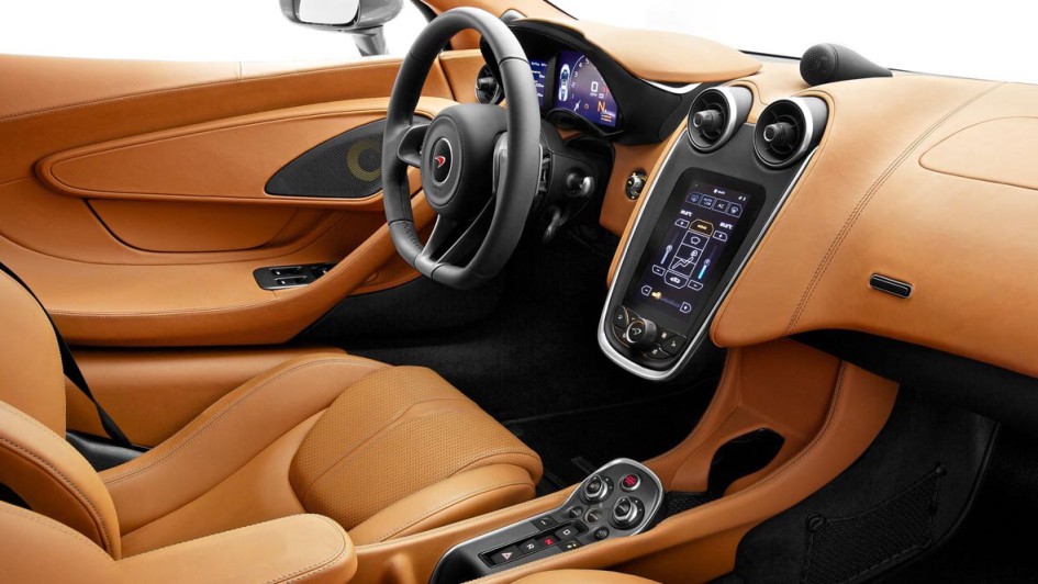 von 10: Im Innenraum befindet sich ein 7 Zoll großer Touchscreen auf der schwebend wirkenden Mittelkonsole. Für das Interieur bietet McLaren verschiedene Alcantara-, Leder- und Kohlefaser-Pakete an.