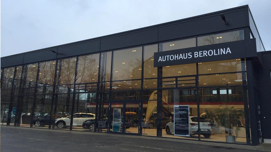 von 11: Berolina-Chef Horst Wetz (2.v.r.) begrüßte zur Eröffnung des neuen Seat-Standorts in Berlin-Tempelhof die Manager Ulrich Selzer, Bernhard Bauer und Hans-Jürgen Kronenberg.