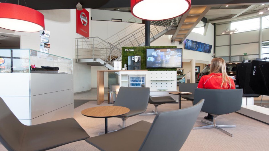 von 11: Mit dem neuen Nissan Retail Concept führt der japanische Automobilhersteller eine europaweit einheitliche Gestaltungsrichtlinie für seine Autohäuser ein.