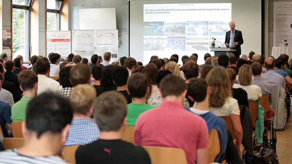 von 4: Porsche Deutschlandchef Jens Puttfarcken war mit seinem Vortrag "Faszination Porsche" am 17. Juni 2015 zu Gast an der Hochschule für Wirtschaft und Umwelt (HfWU).