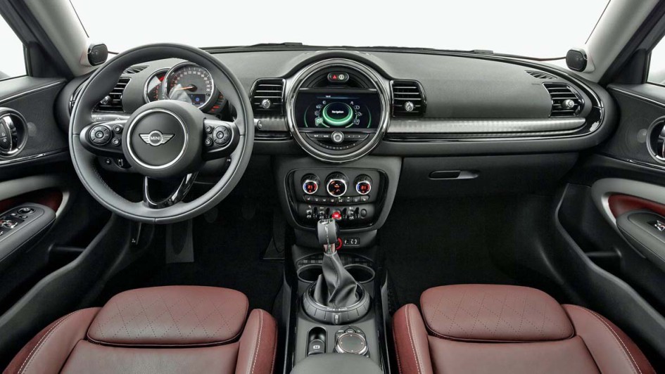 von 12: Tacho und Drehzahlmesser sind wie beim Drei- und Fünftürer auf der Lenksäule untergebracht, der Monitor im Zentralinstrument. Im Clubman ist aber genug Platz, dass die Mittelkonsole bis an das Armaturenbrett heranreichen kann