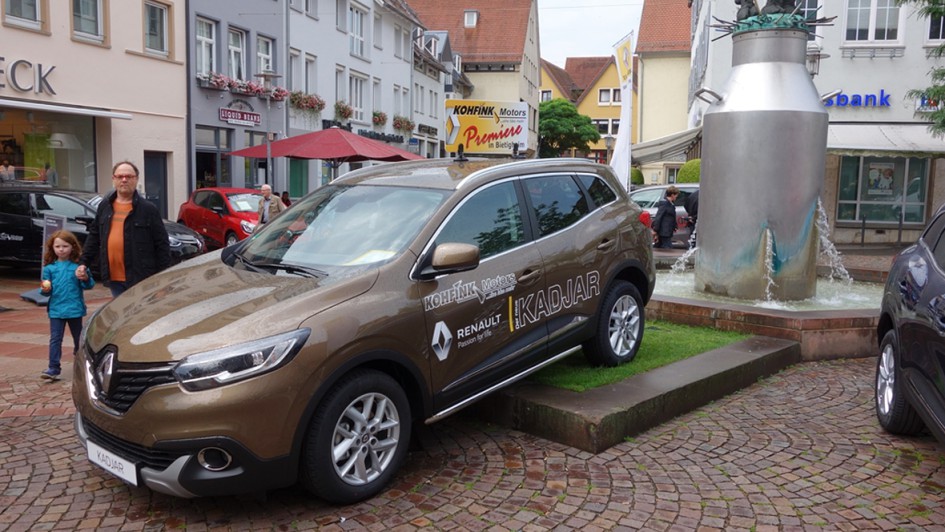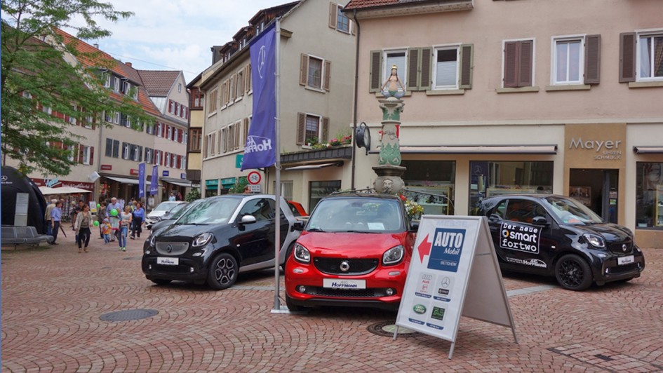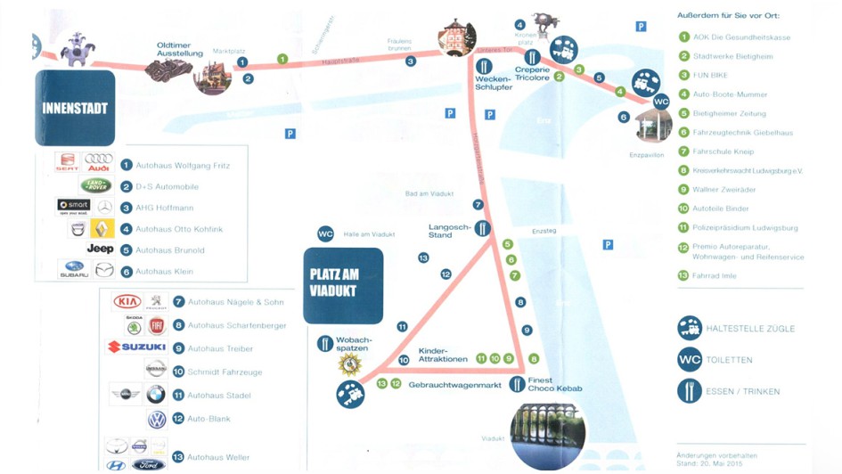 von 12: Für die Besucher gab es einen Führer, der die Standorte der einzelnen Marken aufzeigte. Das Autohaus Weller, voran Hans Weller, war mit dem Marken Opel, Hyundai, Toyota, Volvo und Ford vertreten, das Autohaus Stadel mit BMW und Mini, Auto-Blank mit VW, das Autohaus Scharfenberger mit Skoda und Fiat. Wer am heimischen Standort fehlte, war Porsche. Ein Armutszeugnis!