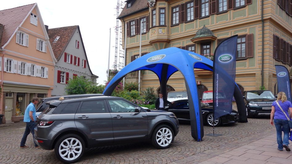 von 12: Vor dem großartigen historischen Rathaus der Stadt blieb einem der Atem zweimal stehen. D+S Automobile präsentierten hier wie auf einem Tablett die neuen Land Rover-Modelle.