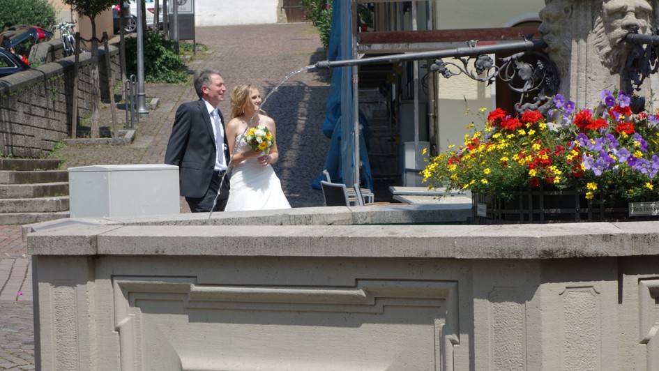 von 12: Selbst schwäbische Brautpaare gehörten mit zur Veranstaltungsszenerie. Hier vor dem letzten freien Gang zum großen Bunde gemeinsamen Glückes!