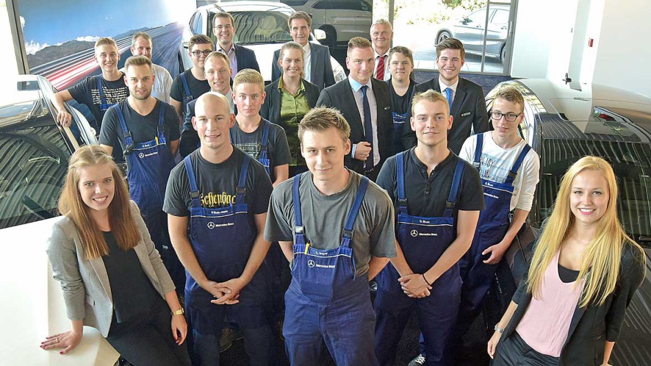 von 19: Auch die Rosier-Gruppe Menden hat neue Auszubildende begrüßt. Die 38 Jugendlichen werden zu Automobilkaufleuten, Kfz-Mechatronikern für Pkw oder Nutzfahrzeuge, Karosserie- und Fahrzeugbaumechanikern oder Fachkräften für Lagerlogistik ausgebildet.
