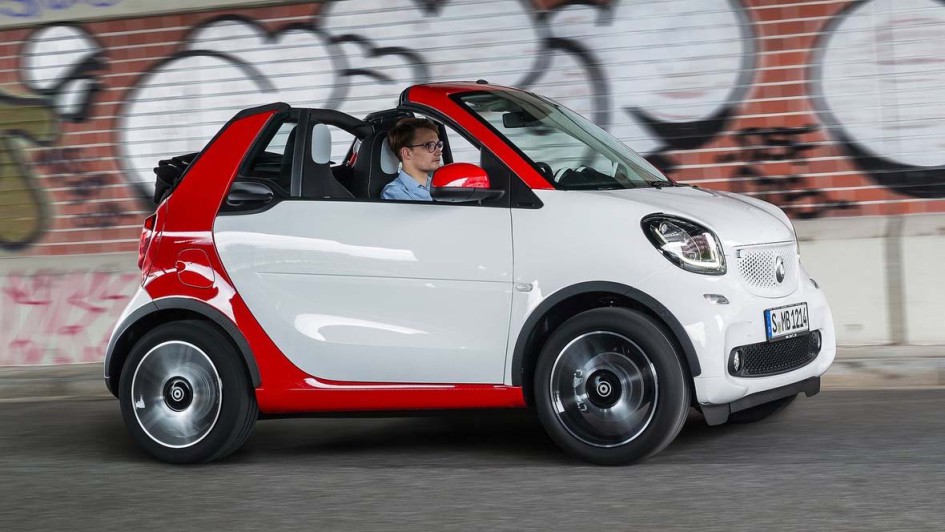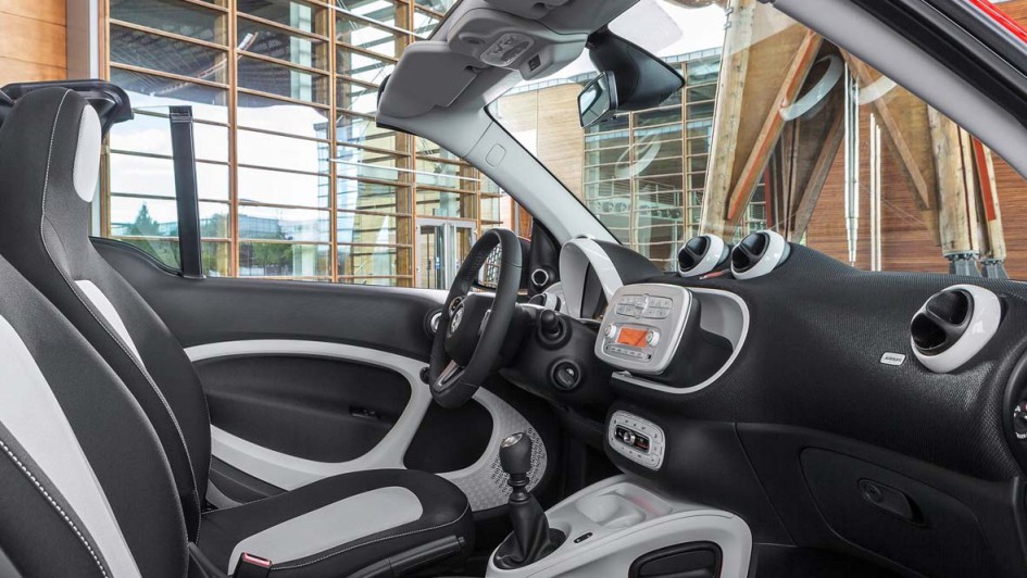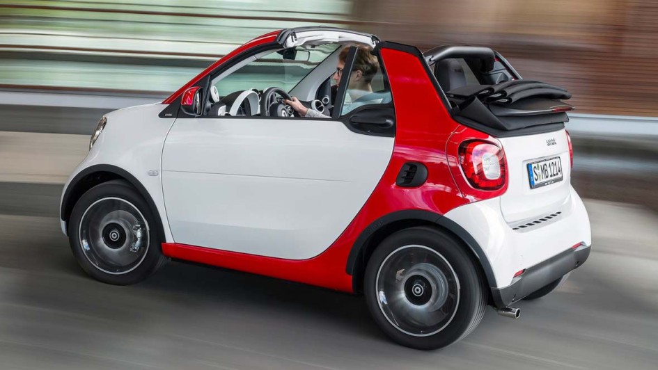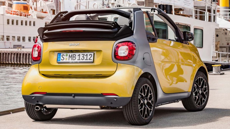 von 14: Dem Konzept des Vorgänger-Modells ist Smart treu geblieben: So kann man das Stoffdach als großes Faltschiebedach zurück fahren, das Verdeck aber auch komplett nach hinten verschwinden lassen