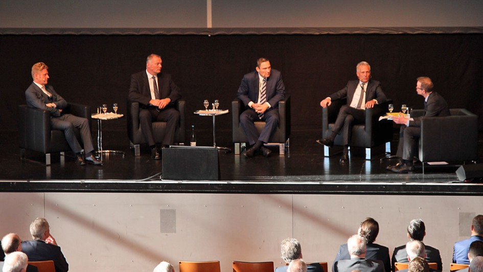 von 10: Zukunftsforum: Prof. Reindl mit (v.l.) Hakan Koc, Gründer und Geschäftsführer AUTO1 Group, Malte Krüger, Geschäftsführer Mobile.de, und Prof. Andreas Knie, Geschäftsführer InnoZ GmbH