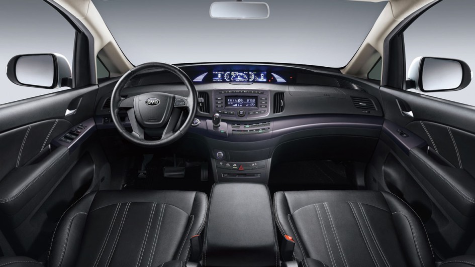 von 4: Wie beim Prius des Kooperations-Partners Toyota sind die Fahranzeigen beim BYD e6 in einem Digital-Instrument mittig über der Mittelkonsole dargestellt.