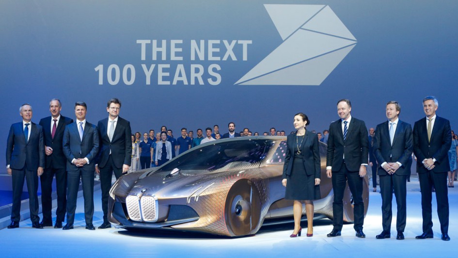 von 10: Da BMW nicht nur eine einzige Geburtstagsfeier wollte, sondern ein ganzes Jubeljahr, geht das am Montag vorgestellte Konzeptauto "Vision Next 100" auf eine symbolische Welttour.