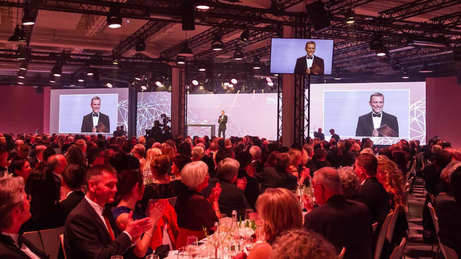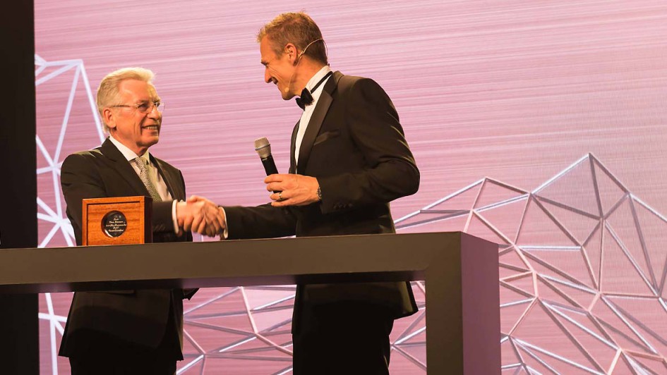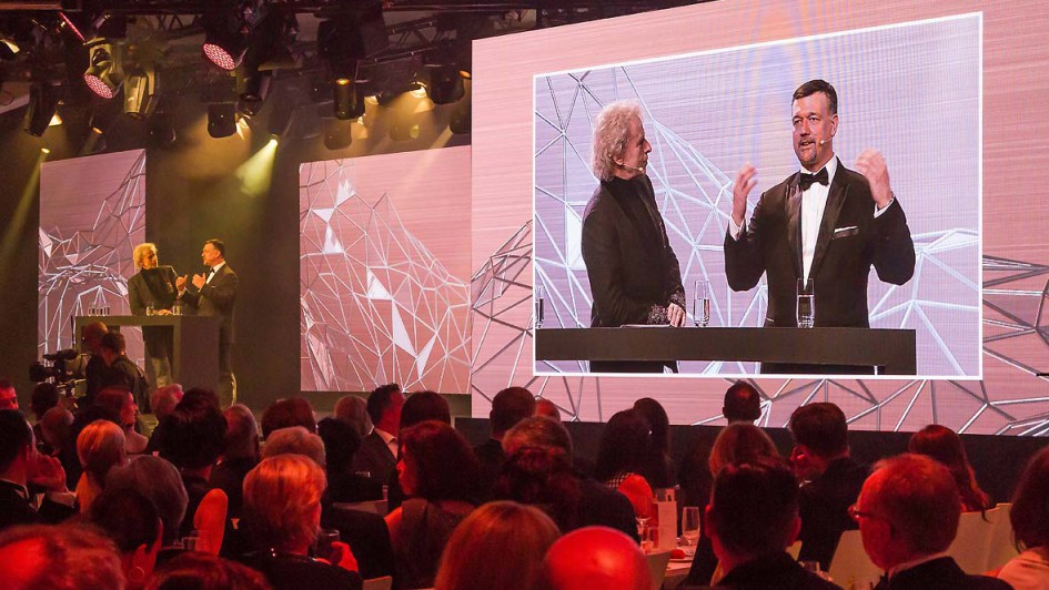 von 15: Die Award Gewinner mit Moderator Thomas Gottschalk und den Laudatoren Martin Thiel, Leiter Vertrieb Handelsorganisation und Direktgeschäft, und Christian Scheppach, Leiter Aftersales.