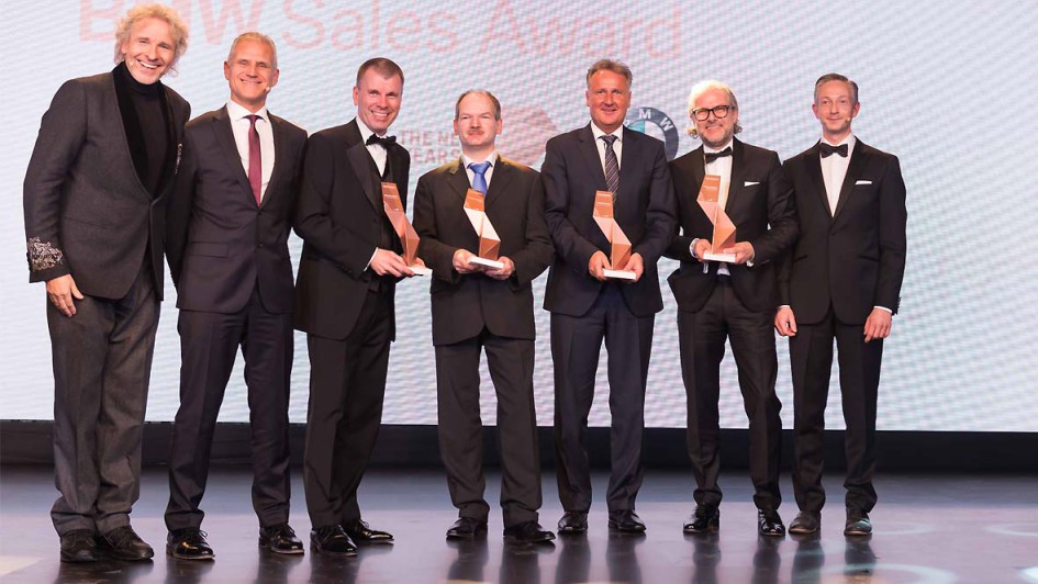 von 15: Die BMW Sales Awards 2015 und das BMW Familienfest fanden am 10. März 2016 in der neuen BMW Group Classic statt. Die Award Gewinner mit Karim Habib, Leiter Design BMW Automobile, Gastgeber Peter van Binsbergen, Leiter Vertrieb Deutschland, Moderator Thomas Gottschalk und dem BMW Vision Next 100.