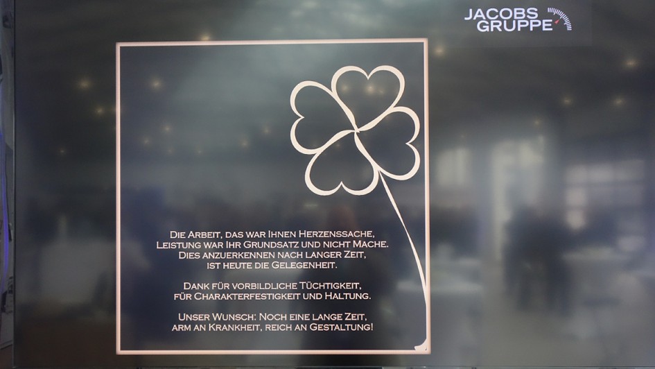 von 16: AUTOHAUS-Herausgeber Prof. Hannes Brachat bei seiner Laudatio auf Günter Jacobs: "Will man das Gesamtwirken von Günter Jacobs begrifflich reduzieren, schälen sich fünf Is heraus: Ideen, Impulse, Innovationen, Initiativen und Investitionen. Günter Jakobs zeichnet ferner aus, dass er die Unternehmensnachfolge erfolgreich gelöst hat. Daniel Jacobs hat bei uns an der Hochschule in Geislingen studiert und ich darf auch die besonderen Grüße von Prof. Dr. Willi Diez überbringen. Patrick Jacobs baute sein Examen an der Dualen Hochschule in Mannheim. Wir alle gratulieren ihnen, Günter Jacobs, zu ihrem großartigen Lebenswerk, auch für ihr gesellschaftliches Wirken, u.a. als Handelsrichter beim Landgericht Aachen, ein Amt, das sie seit 20 Jahren ausüben, für ihr soziales Wirken für den Kinderfonds Jakobs im Verbund mit der Caritas und wünschen ihnen weiterhin viele besondere Momente des Glücks. Eine erfüllende Zeit!"
