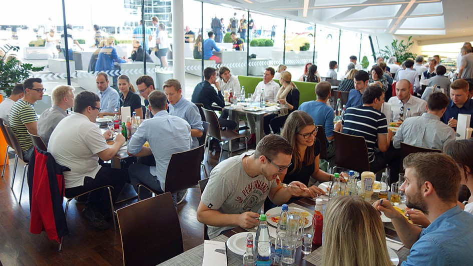 von 18: Pause. Persönlicher Erfahrungsaustausch zum ersten Teil, zur Werksführung. Anclam lud die Studentenschaft in den "Boxenstopp" des Museums zum Mittagessen ein.