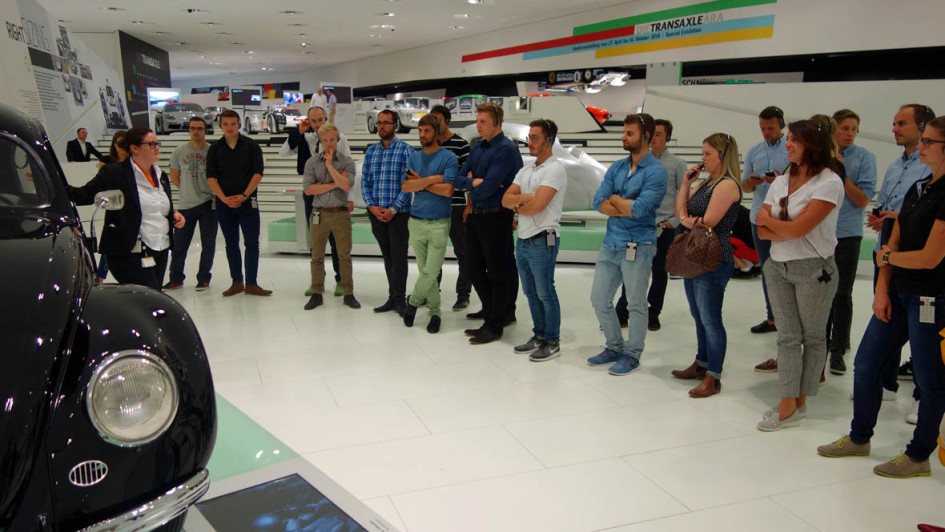 von 18: 13:30, Julia Budei führte die Studentengruppe durch das Porsche-Museum. Stationen, von 1875, dem Geburtsjahr von Ferdinand Porsche bis heute. Der erste Käfer gehörte zu den besonderen Stationen.