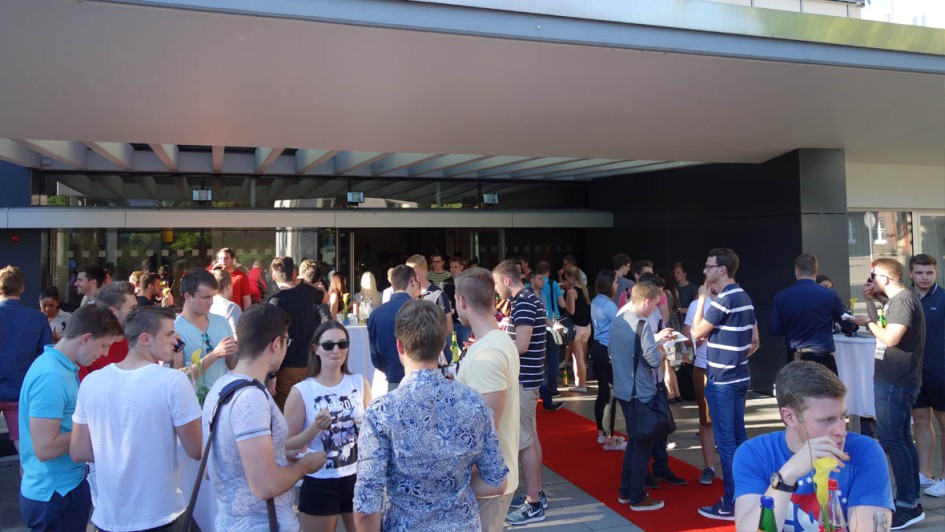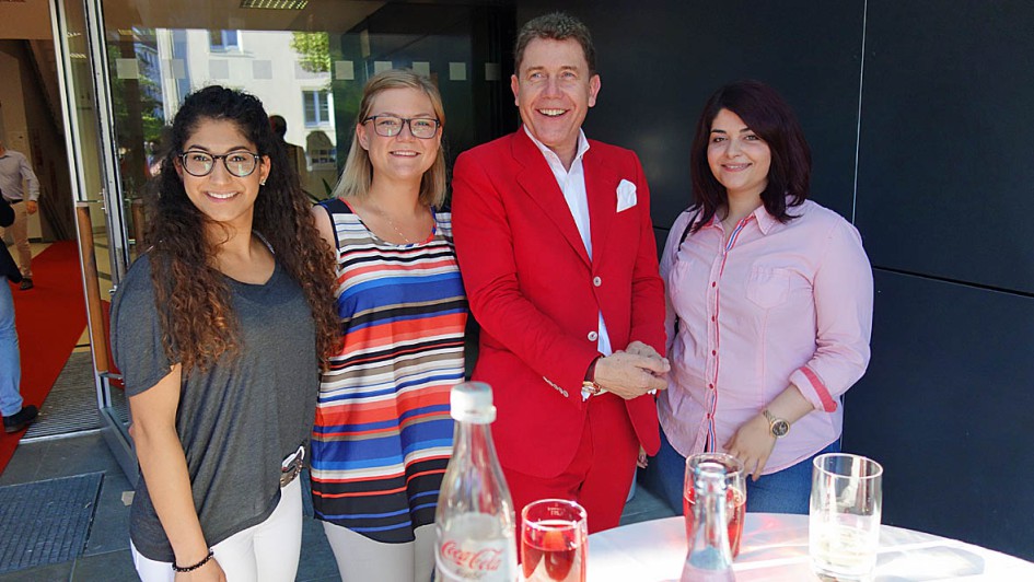 von 18: Prof. Hannes Brachat dankte Wilfried Wilhelm Anclam für einen unvergesslichen Hochschultag, den der Gastdozent inszeniert und in allen Facetten für alle ermöglicht hat. Dann lud Gastdozent Anclam bei untergehender Sonne ins Foyer der Hochschule zur finalen Tagesparty mit qualitativen "WMF-Besonderheiten" und Getränken aller Art ein.