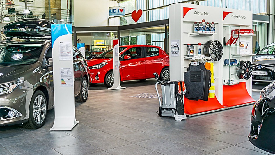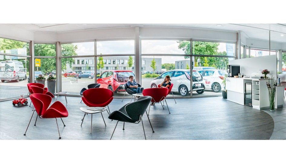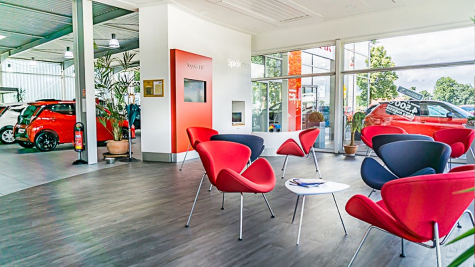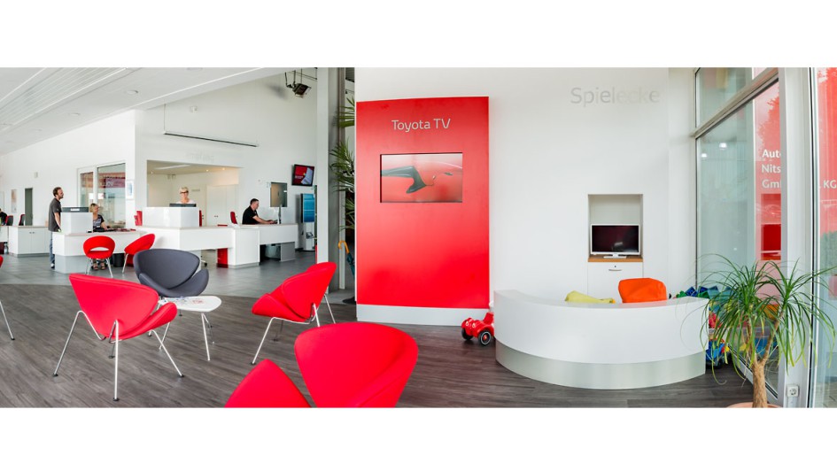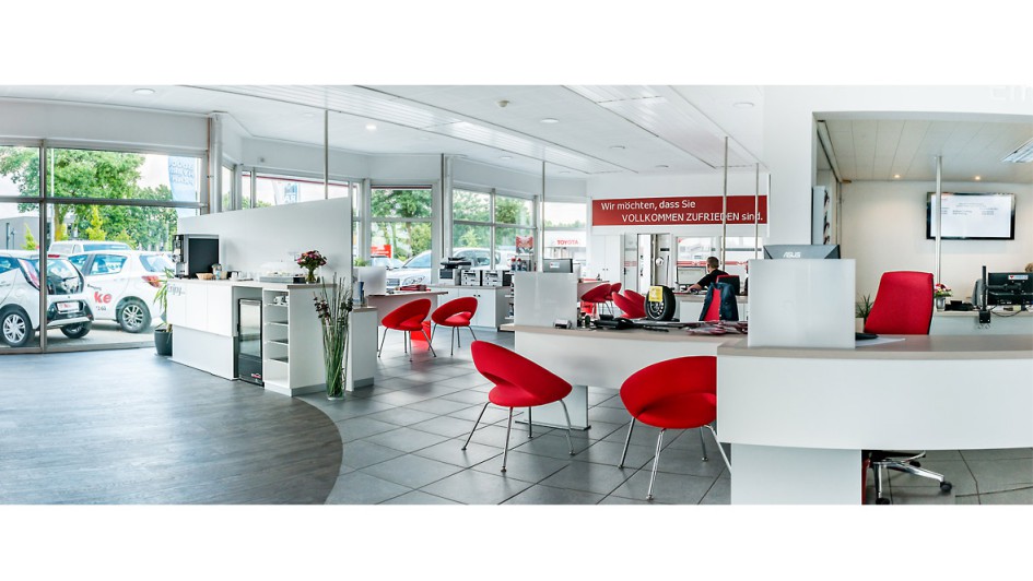 von 10: Alle rund 400 Toyota-Partner sollen bis Anfang 2018 mit digitalen Technologien, qualitativ hochwertiger Ausstattung, anschaulichen Displays und gemütlichen Möbeln ausgestattet sein.