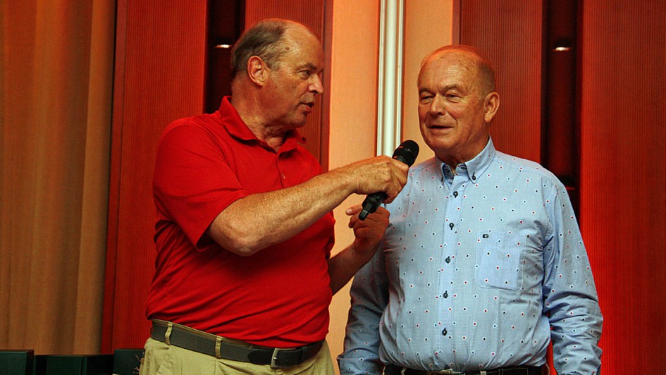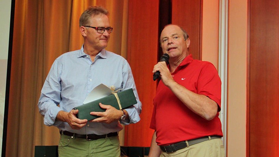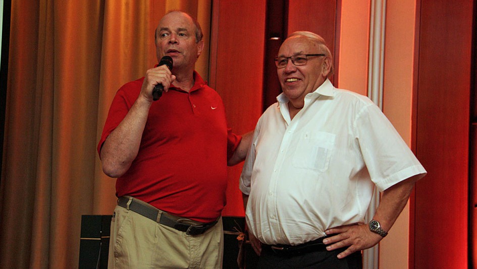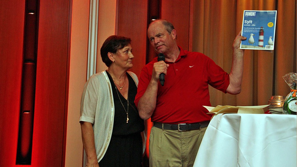 von 14: Tanja und Siegfried Ernst vom Autohaus Ernst + König in Freiburg überreichten ihrem langjährigen Freund Hannes Brachat während der Feierlichkeiten ein besonderes Andenken.