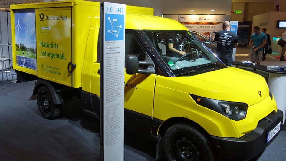 von 32: Unter "Tomorrow's Service & Mobility" fand man aber den streetscooter der Deutsche Post. 2010 hatten führende Köpfe der RWTH Aachen die Vision, Elektrofahrzeuge für den Kurzstreckeneinsatz zu bauen. VW lehnte ein Engagement ab. Man legte eigenständig los. Im Dezember 2014 kaufte die DHL, eine Tochtergesellschaft der Deutsche Post die Aachener Group und baut jetzt selber die Autos. Noch mehr. Man kann sie kaufen. Preis, ab 22.500 Euro! Reichweite: 80 km, Höchstgeschwindigkeit: 80 km/h. Übrigens der Zulieferer Prevent, der neulich gewagt hat, was bislang kein VW-Zulieferer gewagt hat, sich mit VW anzulegen, war – wie Webasto – nicht auf der Messe vertreten.