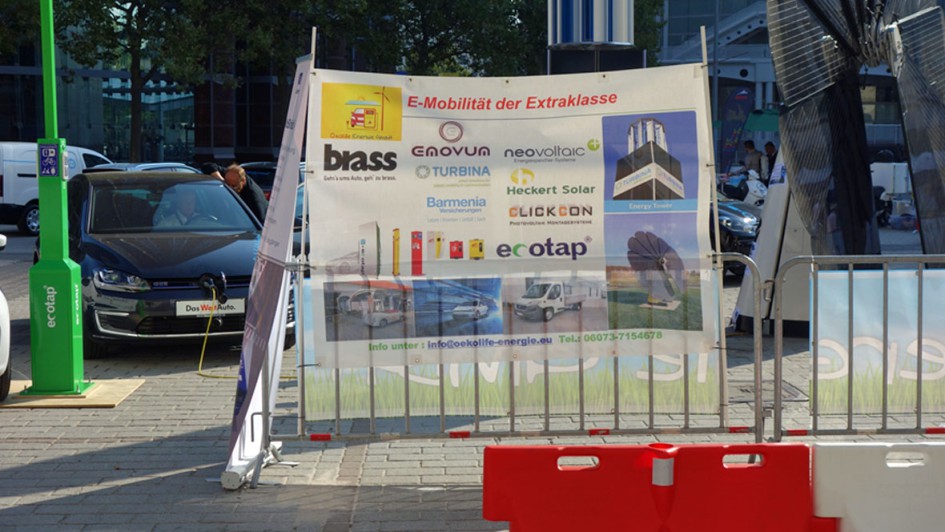 von 32: Die Plakatankündigung zeigt, mit welcher Professionalität der E-Mobile-Parcour betrieben wurde. Immerhin saß ein Händler, Brass im Boot.