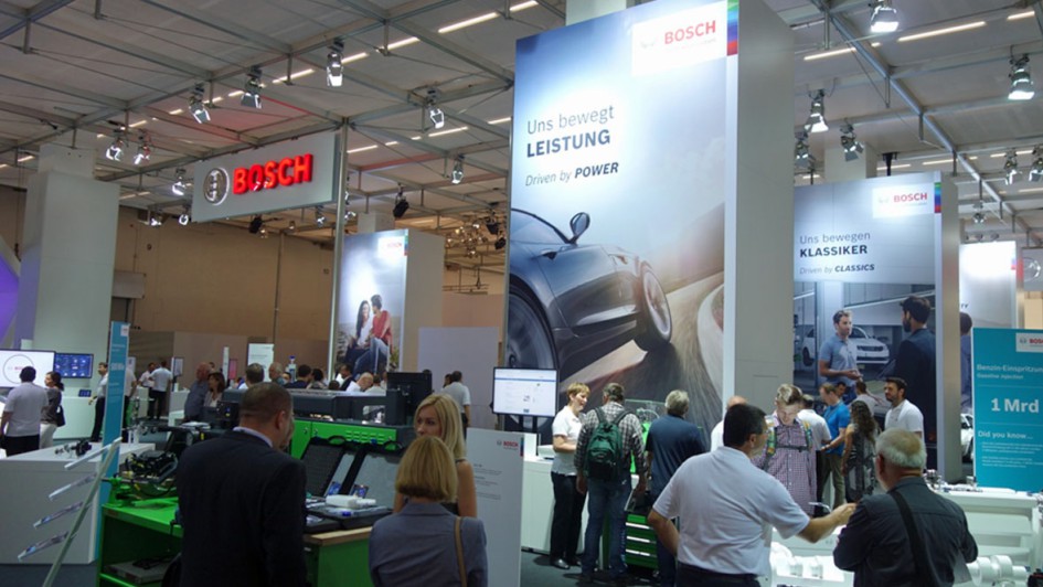von 32: Bosch hat ohne Frage nicht nur die größte Standfläche aufzubieten, sondern auch das ansprechendste Standkonzept. Motto: Wir bewegen! Informationen, Mobilität, Vernetzung, Digitalisierung u.a.