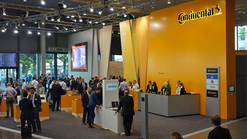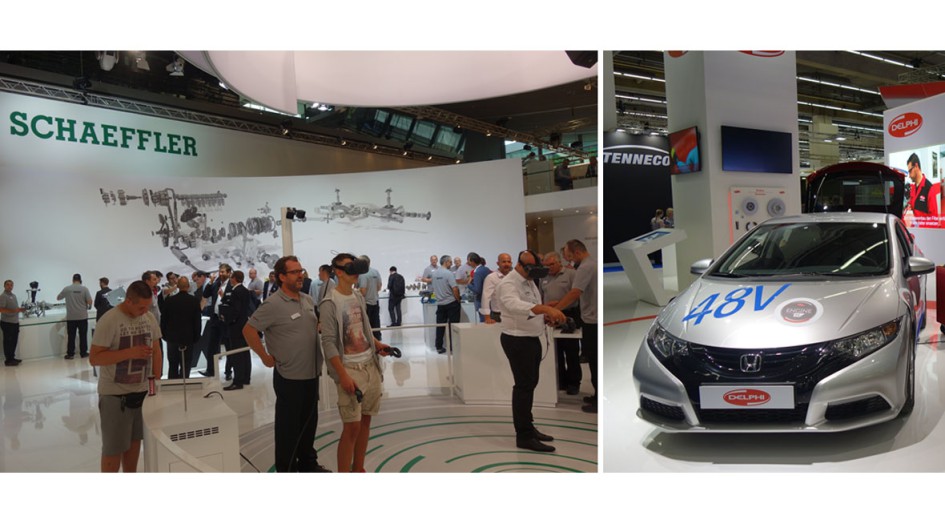 von 32: Ein Blick auf den Schaeffer-Stand mit VR-Experimenten und Delphi, die – wie ein weiterer großer Teil der Messe – auf das Thema Nutzfahrzeuge ausgerichtet war.