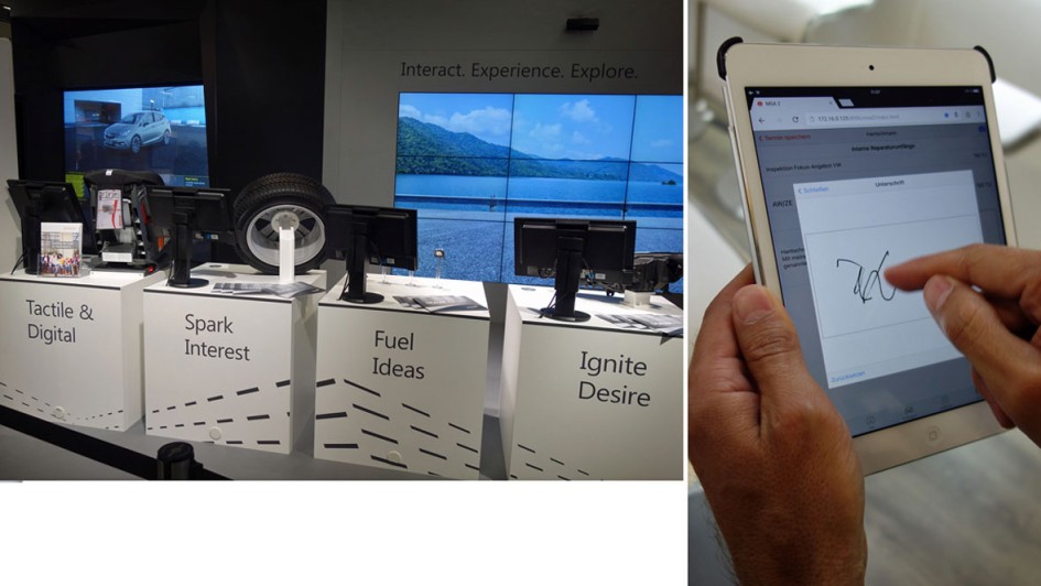 von 32: Sieglinde Walz, Geschäftsleitung von incadea präsentierte die Innovation "Händler 4.0". Es geht um ein futuristisches Showraumkonzept, das zusammen mit Microsoft speziell für den Handel entwickelt wurde. Details unter www.incadea.com. Soft-nrg präsentierte die elektronische Unterschrift im Autohaus sowie die Online-Terminanmeldung.
