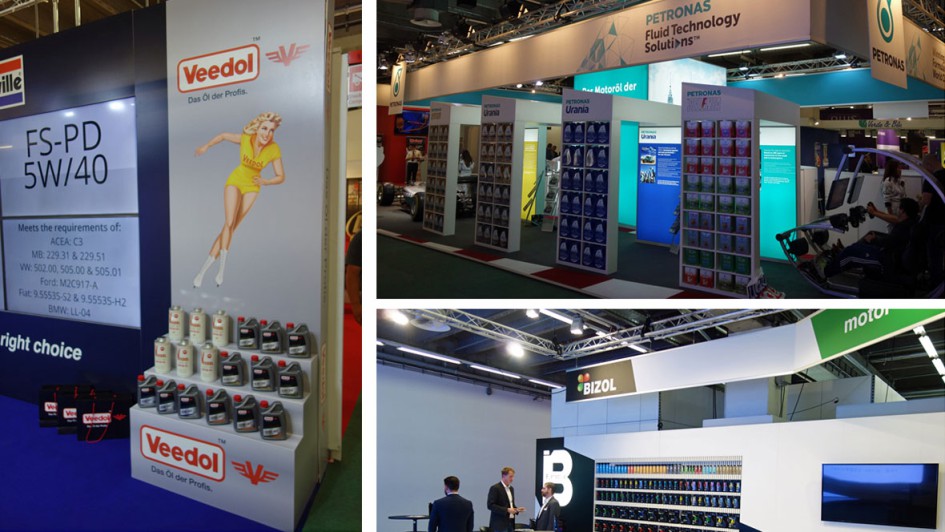 von 32: Veedol war mit einer "zarten Standausgabe" vertreten. Petronas und Bizol, man wartete auf Kunden. Herzhaft ging es auf dem Messestand von Liqui Moly zu. Ernst Prost, Liqui Moly-Chef: "Wir sind mit großer Überzeugung hier in Frankfurt dabei und machen das zu einem echten Kundenevent. Wir wollen national wie international persönlich ansprechbar sein. Ich möchte live hören, was unsere Kunden von der Basis berichten."