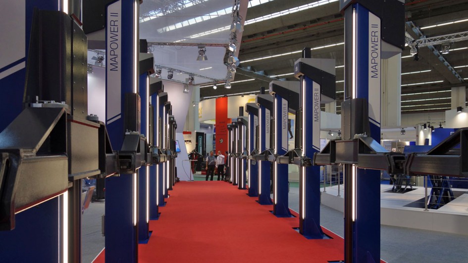 von 32: Faszinierend ist bei vielen Ständen immer wieder das Standkonzept. Die Gedankenwelt, die hier viele Geister kreativ hineinlegten. Der "rote Hebebühnenteppich" auf dem MAHA-Stand beispielsweise, hatte ohne Frage für das neue Produkt "Mapower II" eine gigantische Wirkung.