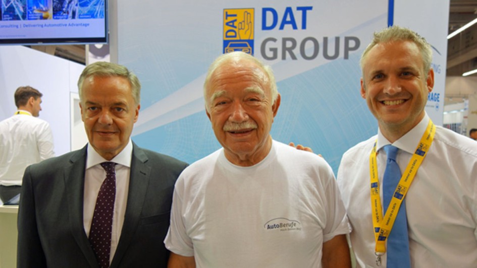 von 32: Ein weiteres Pro für einen Messebesuch ist das Netzwerken. Hier auf dem Stand der DAT trafen wir den ZDK-Ehrenpräsidenten Bernhard Enning (M.), der zugleich auf der Messe immer seinen Geburtstag feiert. Hier mit dem Leiter des Berliner ZDK-Büros, Christoph Konrad (l.) und DAT-Pressesprecher Martin Endlein.