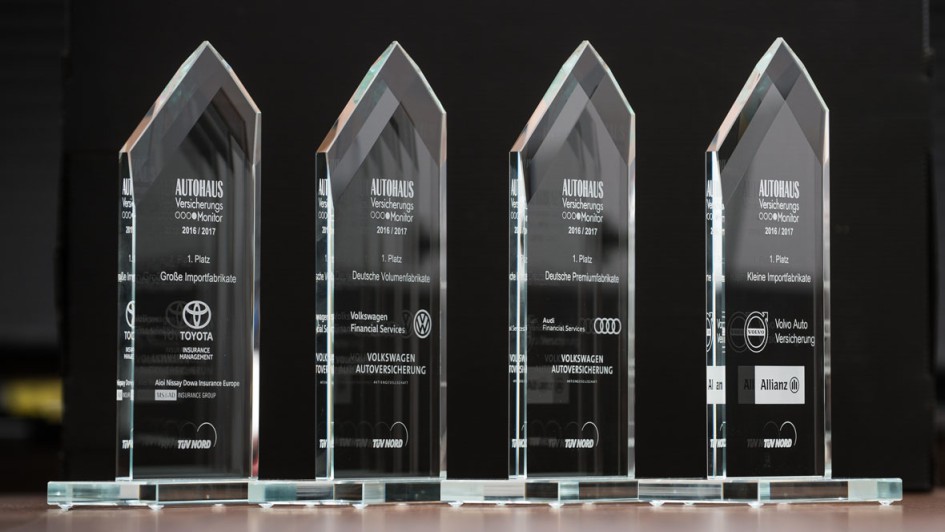 von 11: Der Toyota Versicherungsdienst holte gemeinsam mit Aioi Nissay Dowa Insurance Europe zum sechsten Mal in Folge die Ehrung für die "großen Importfabrikate" und war in diesem Jahr erneut Gesamtsieger. Darüber freuten sich Jürgen Heinrich, Udo Jüngling, Martin Spangenberg und Jörn Schwarplys.