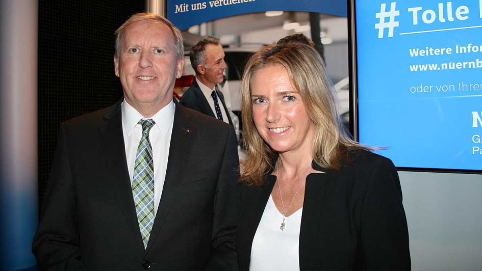 von 12: Langjähriger Partner ist zum Beispiel die Nürnberger Versicherung, die in München durch Abteilungsdirektor Vertrieb-Autohaus Bernhard Heusl und Grit Sonntag vertreten war.