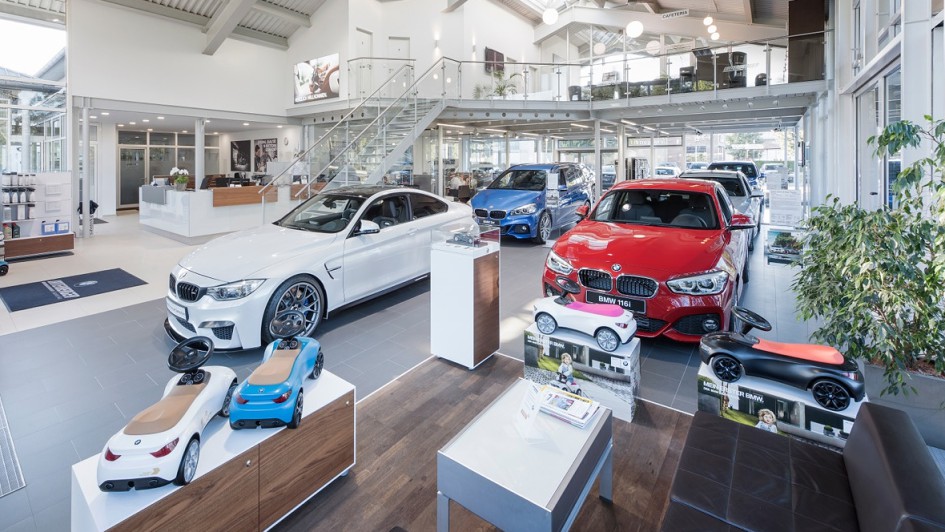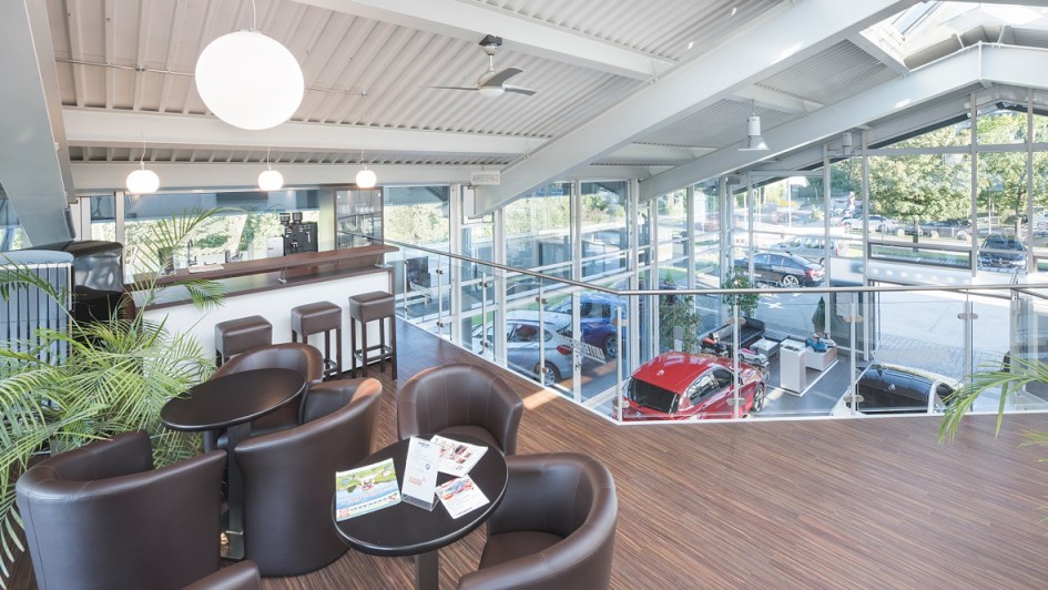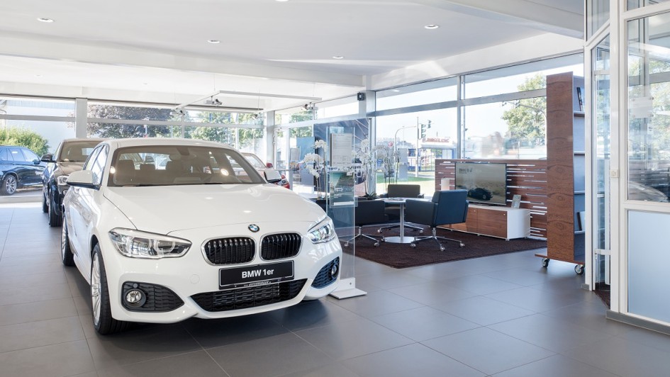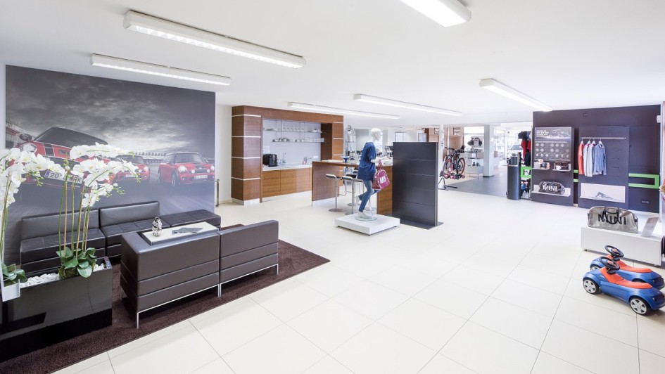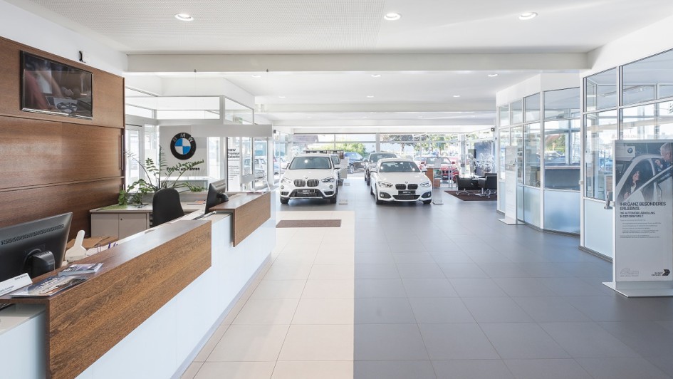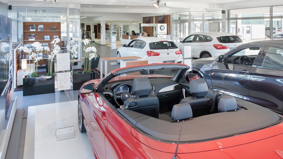 von 11: Für die Verkaufsberater gibt es drei virtuelle Verkaufskojen. Dort können sie gemeinsam mit dem Kunden dessen Wunschauto auf einem Großbildschirm konfigurieren.