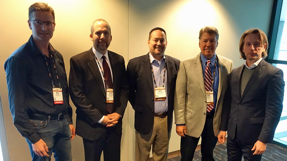 von 6: Die Santander Consumer Bank arbeitet beim Vollserviceleasing mit ARI zusammen, das Unternehmen gehört zur Holman Automotive Group. Von rechts Thomas Hanswillemenke, Santander, Brain Bates, Gene Welsh, Glenn Gardner alle Holman Automotive Group und Maik Künast, Santander