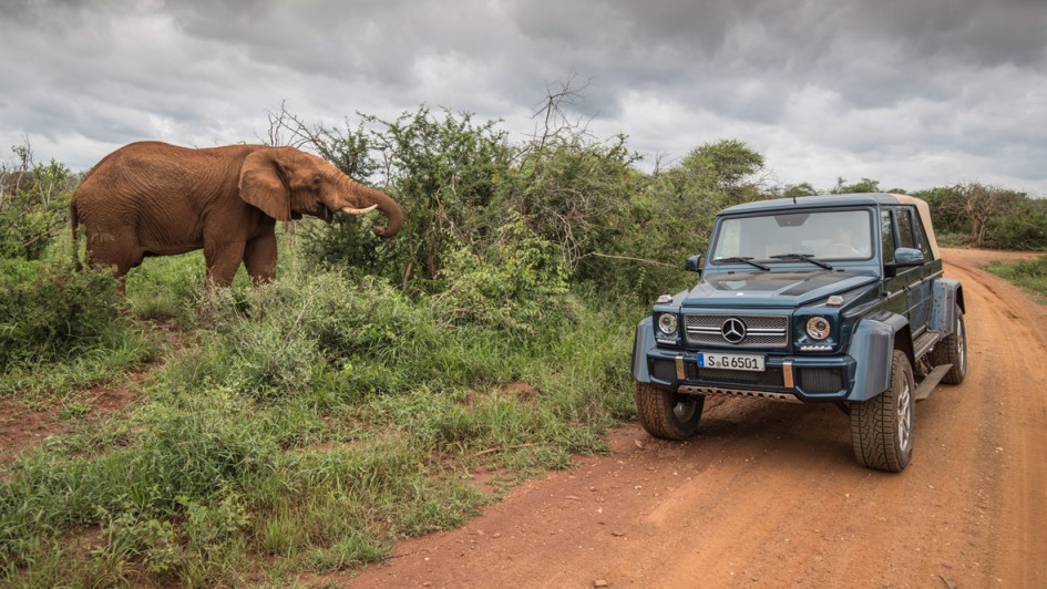 von 12: Ganz nebenbei bekommt die jetzt fast 5,50 Meter lange G-Klasse damit eine derart imposante Silhouette, dass Elefanten wie Kuscheltiere wirken und der Löwe abdanken kann