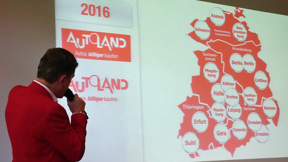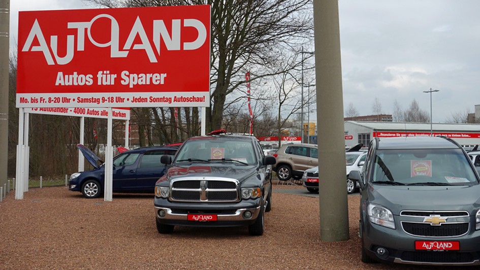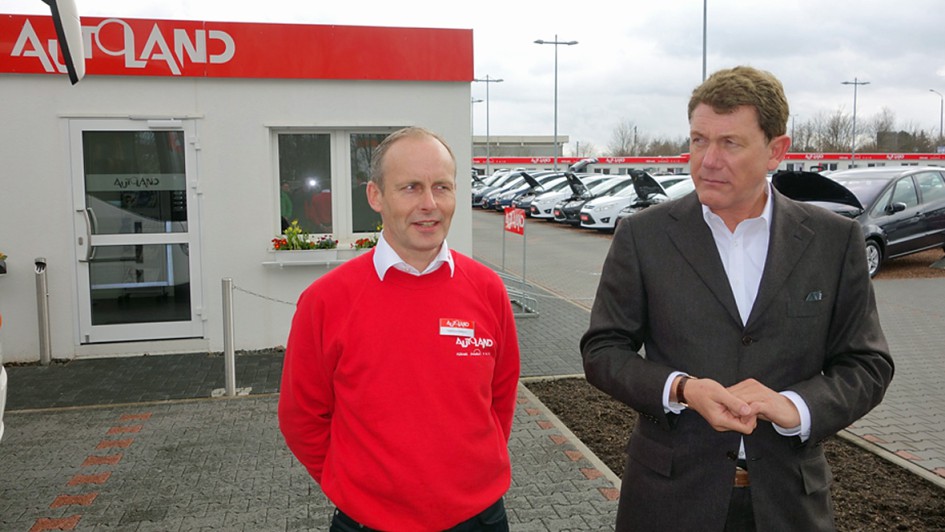 von 24: Autoland investiert pro Monat 300.000 Euro in die Werbung, um das "Auto für Sparer" unter die Menschen zu bringen. Kundenparkplätze am Eingang sind sichtbar markiert!
