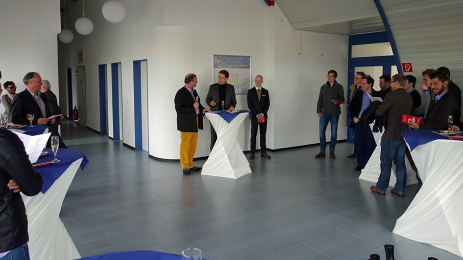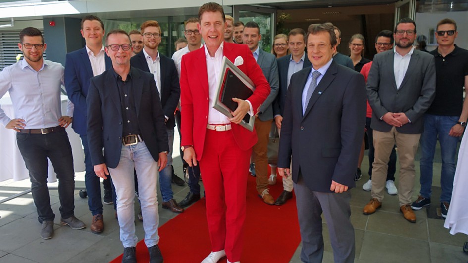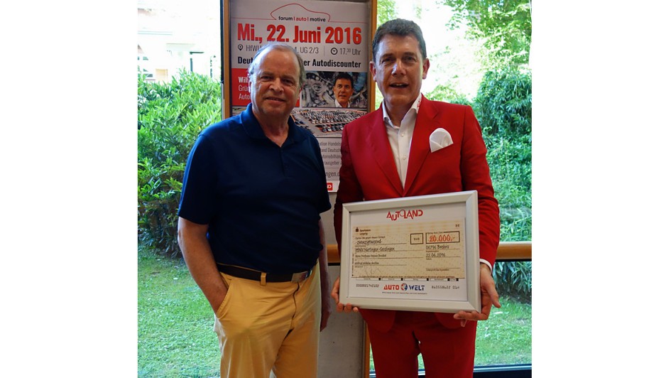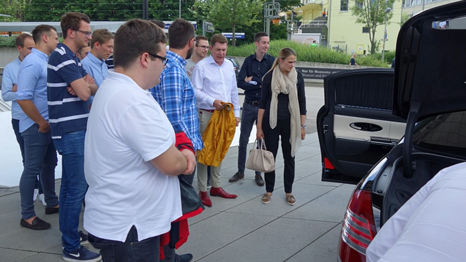 von 24: Im Rahmen des "Geislinger Automobilsommers 2016" wurde er von Rektor Prof. Andreas Frey (re) und Studiendekan Prof. Stefan Reindl und den Studenten willkommen geheißen.