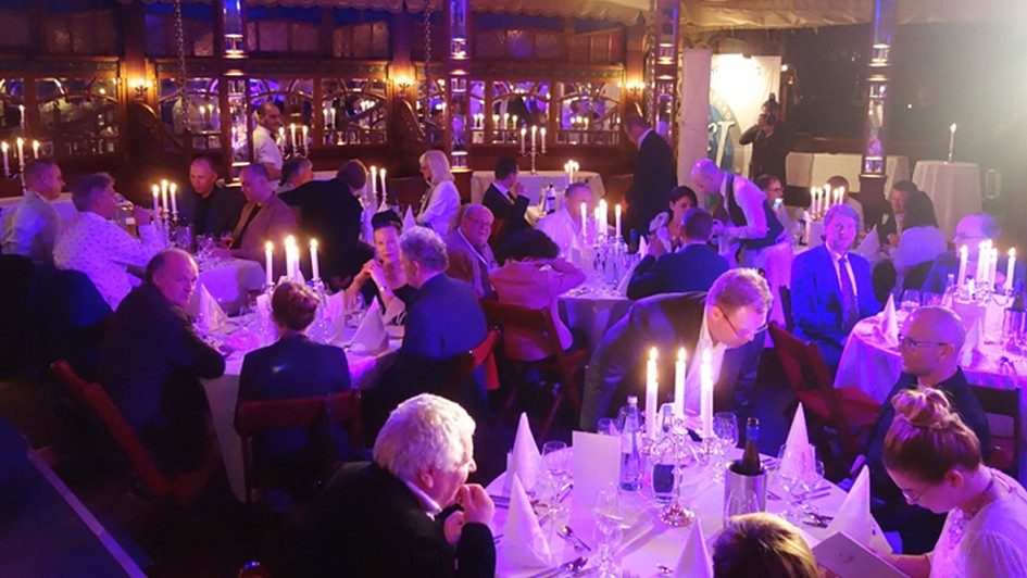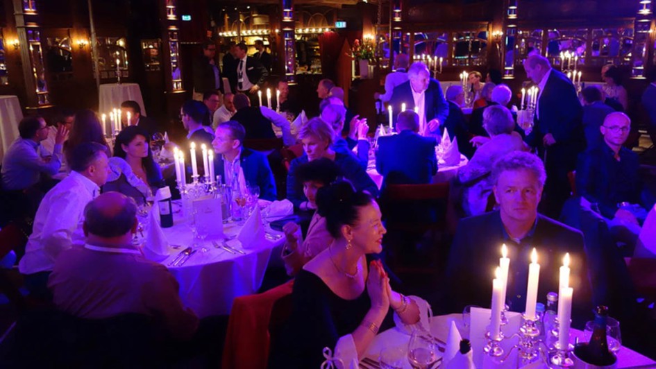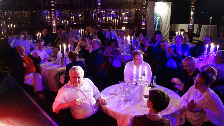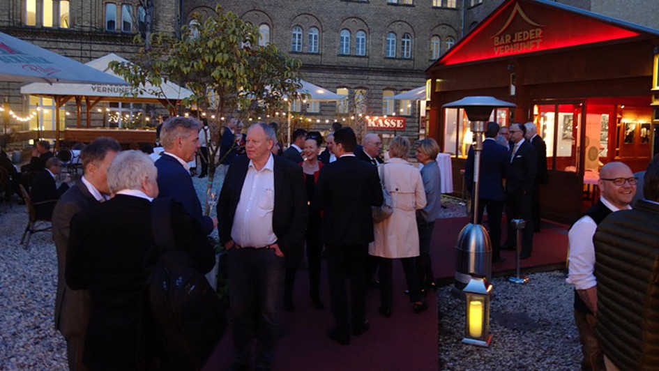 von 27: Ein Bilderbuchwetter leitete den Galaabend im Kerzenschein ein. Sektempfang vor der "Bar jeder Vernunft". Der Veranstaltungsort, Buffet sowie die gesamte Organisation und Service, alles war vorbildlich gestaltet. August Schürenstedt bat später das komplette Service-Team zum Dank auf die Bühne.