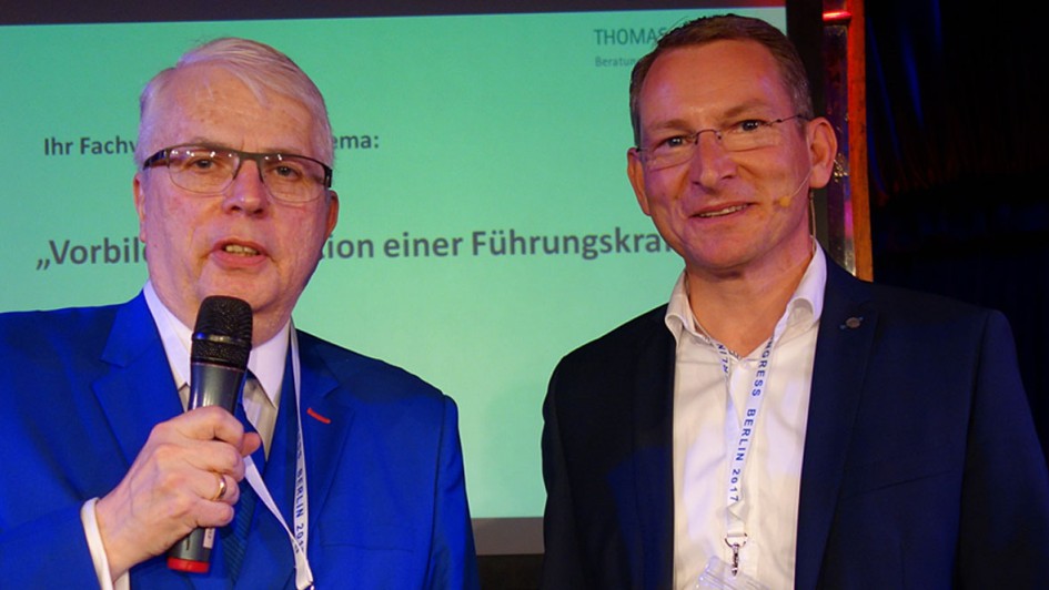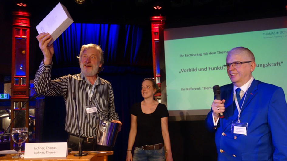 von 27: August Schürenstedt führte Thomas Ischner, Münster, ein, der über "Vorbild und Funktion einer Führungskraft" sprach. Die große Herausforderung: "Bringe ich die PS meiner Mitarbeiter auf die Straße?" Im Dialog entwickelte er den Kreislauf guter Führung und hielt immer wieder den Spiegel vor. Da waren die Fundamente Persönlichkeit, Führungsverständnis, Fachkompetenz und besonders gewichtig die Sozial-Kompetenz. Atmosphärisch hob Ischner auf den "gute Laune-Faktor" im Alltag ab.
