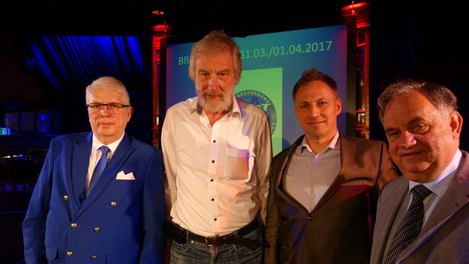 von 27: Der BfI-Vorstand 2017. August Schürenstedt (li) 1. Vorsitzender, Günther Sakuth, 25 Jahre Schatzmeister. Er gab sein Amt ab und wurde zum 2. Vorsitzenden gewählt. Wolfgang Steurer, lange Jahre 2. Vorsitzender, hat nun per Akklamation das Schatzmeisteramt übernommen. Als weiteres Vorstandsmitglied fungiert Panagiotis Sarafoudis. Uwe Lanzendörfer stellte sein Amt als 2. Vorsitzender aus persönlichen Gründen zur Verfügung, was allgemein sehr bedauert wurde. Schürenstedt dankte Lanzendörfer für all seine Impulse, die er in den vergangenen Jahren für den BfI im Vorstand gesetzt hat. Vielleicht löst sich da mancher Knoten und er kommt wieder zurück.