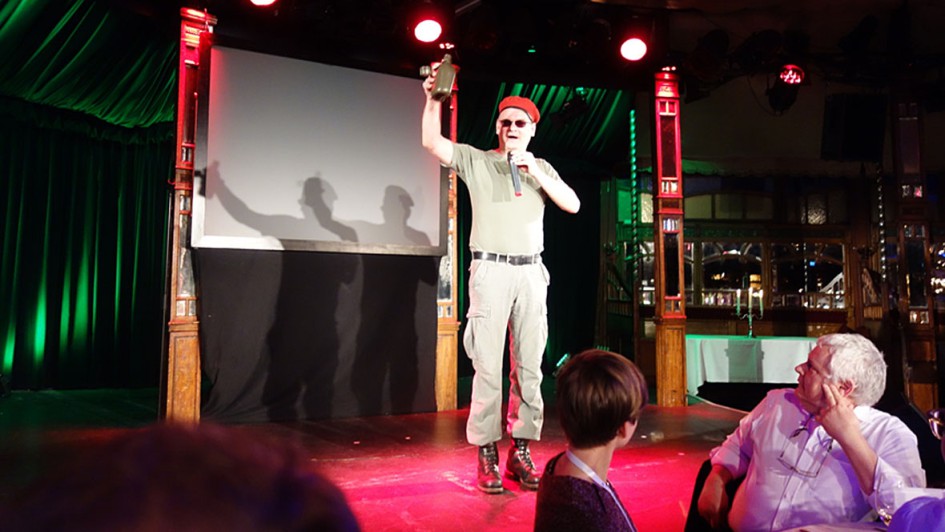 von 27: August Schürenstedt bei der Eröffnung der BfI-Hauptversammlung in Berlin. Ein Blick in die Versammlung sowie die Sonderausgabe des "Parallelimporteur"