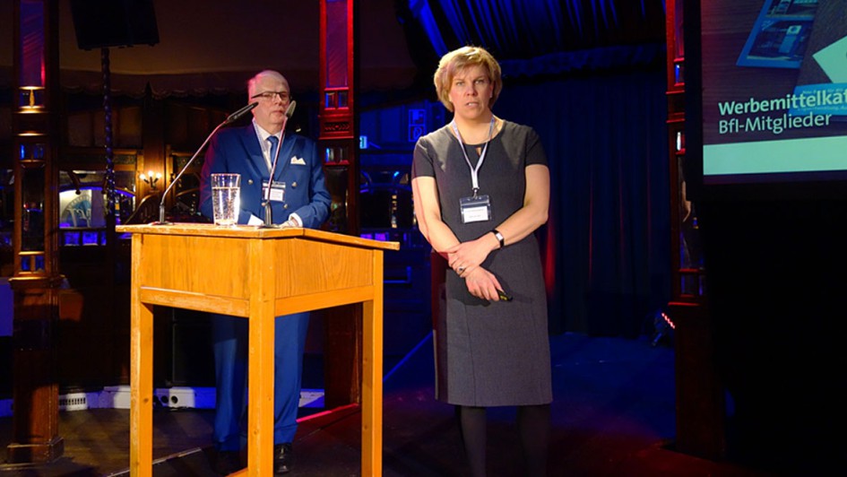 von 27: Betty van Loon-Schifferdecker stellte mit August Schürenstedt die neuen Kommunikationsmittel vor, die für die Mitglieder entwickelt wurden und über den BfI-Shop bezogen werden können. Geschäftsdrucksachen, Infomaterial, Werbeträger, Streuartikel und Präsente, CI-Entwicklung, Außenwerbung, Prospekte u.a.