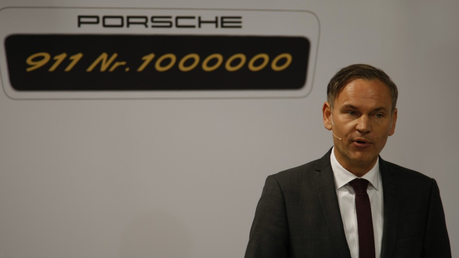 von 5: Gefeiert wurde direkt im Stammwerk, wo der 911 – inzwischen in der siebten Generation – nun seit gut fünfeinhalb Jahrzehnten gefertigt wird. Im Bild: Porsche-Chef Oliver Blume.